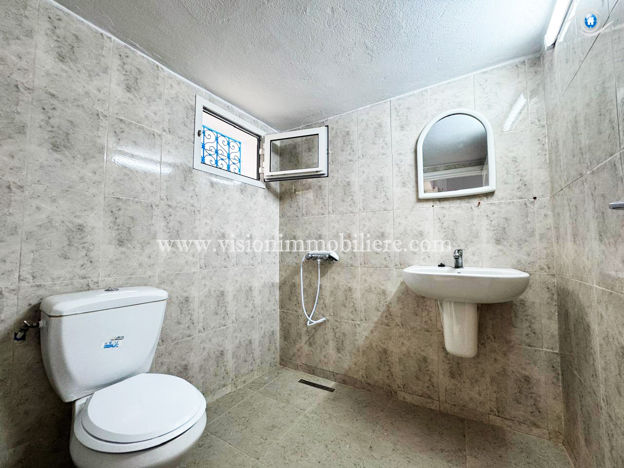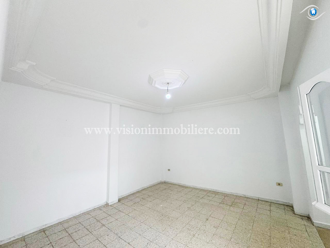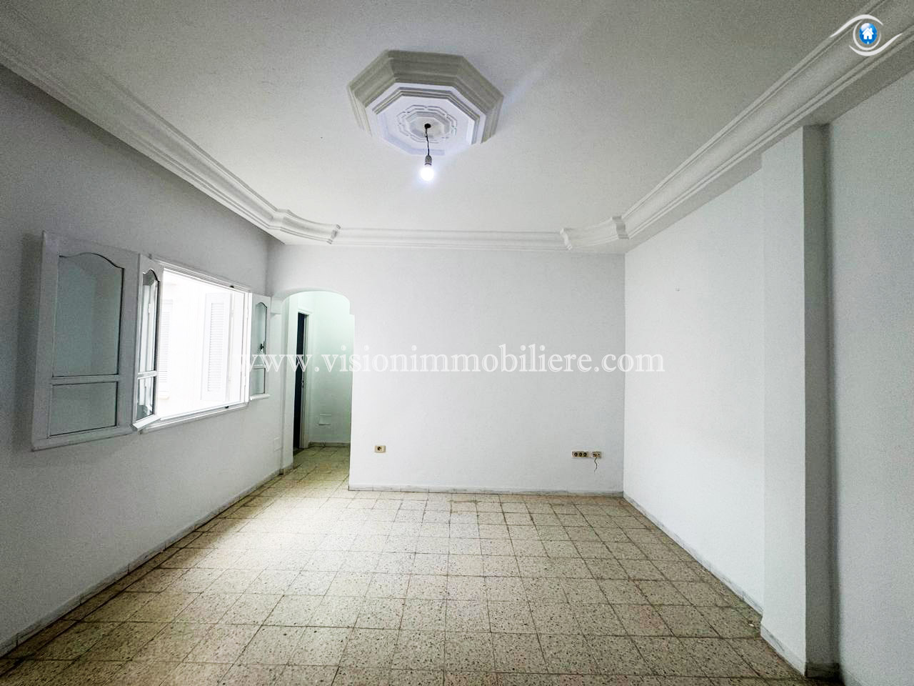 Vision-immobilière Hammamet Tunisie, met en location pour toute l'année , Un appartement situé à Hammamet centre au 1ére étage . L’entrée donne sur un salon lumineux et spacieux et une terrasse . Une cuisine est aménagée par les éléments de rangement nécessaire. Le compartiment nuit disposent deux chambre à coucher et une salle d'eau.