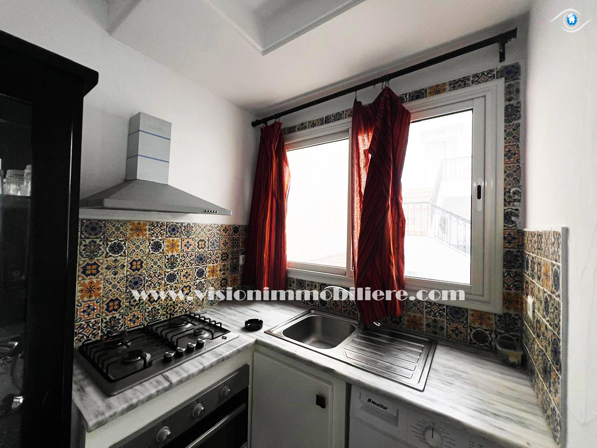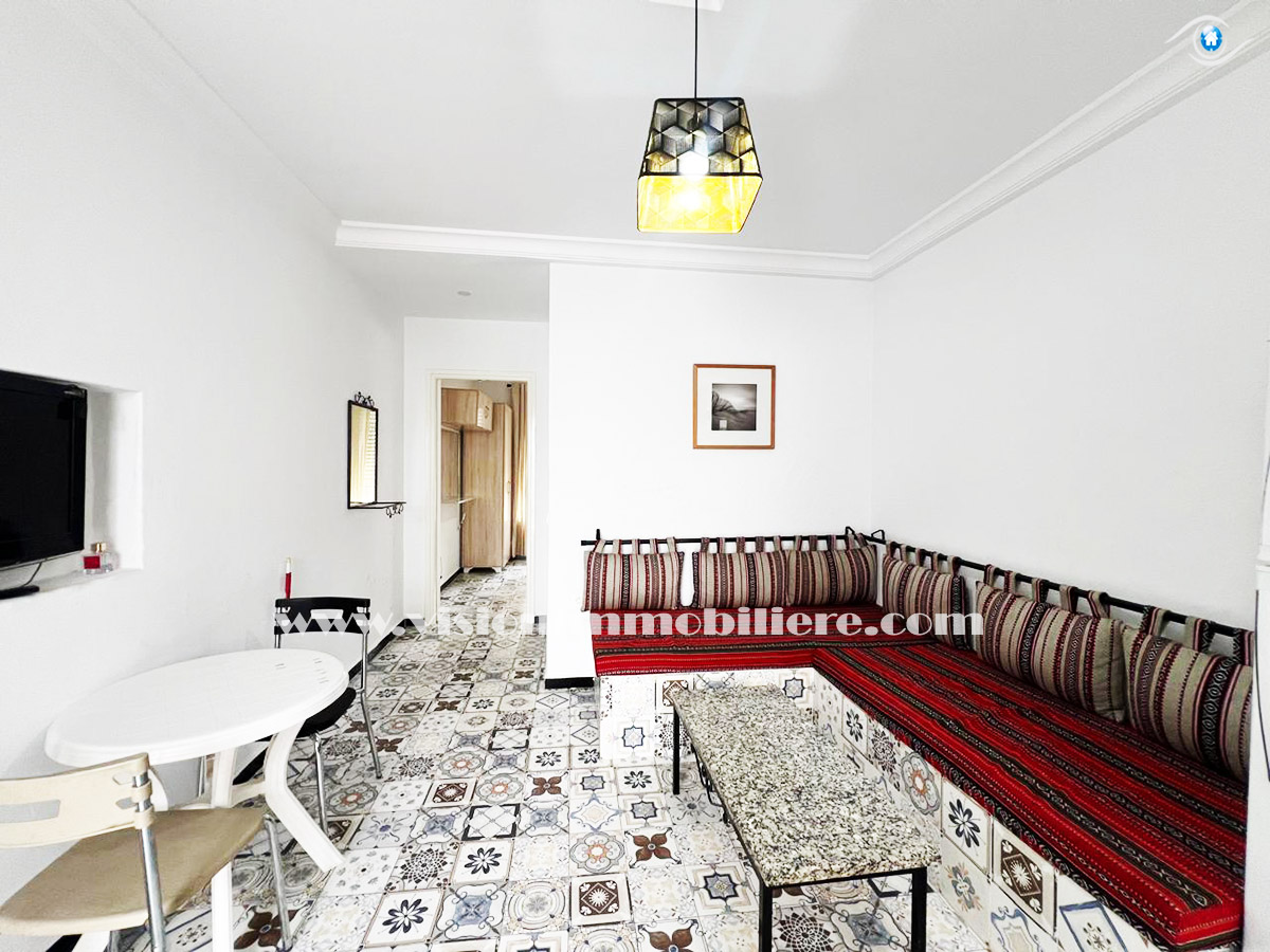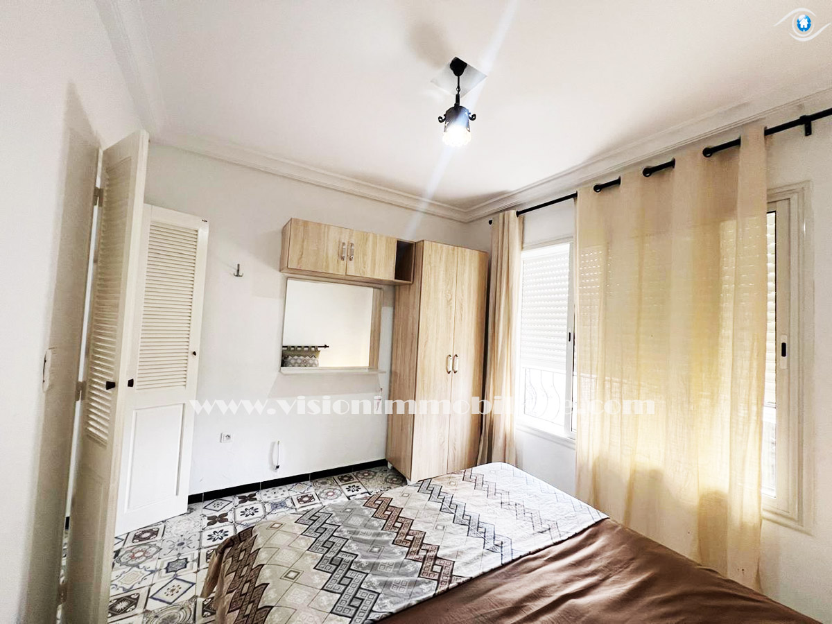 A louer, chez vision-immobilière Hammamet Tunisie, un appartement situé Hammamet centre au 1ére étage dans un résidence calme et sécurisé .L’entrée donne sur un salon lumineux et spacieux . La kitchena agencée est aménagée par les éléments de rangement nécessaire. Le compartiment nuit disposent un chambres à coucher . une salle d'eau . L’appartement est entièrement équipé de chauffage central et de climatisations.