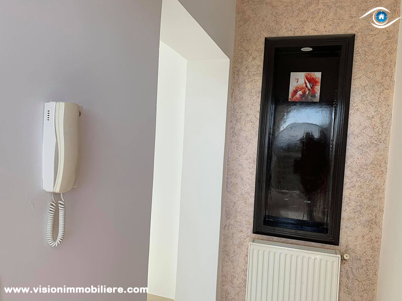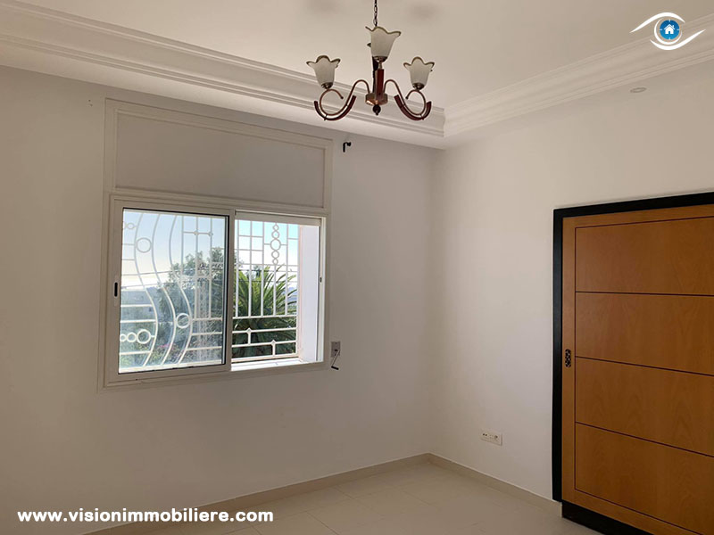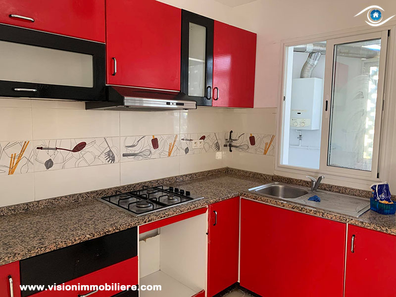 A louer, Chez Vision Immobiliére Tunisie , Cet appartement non meublé , se situé à Hammamet Nord au 1 er étage . La partie jour d’appartement est composée principalement d’entrée sur un salon . La cuisine dispose de plusieurs éléments de rangement. Le compartiment nuit dispose d'un seul chambre à coucher meublée d'un dressing pour plus de rangements et une salle de bain commune.