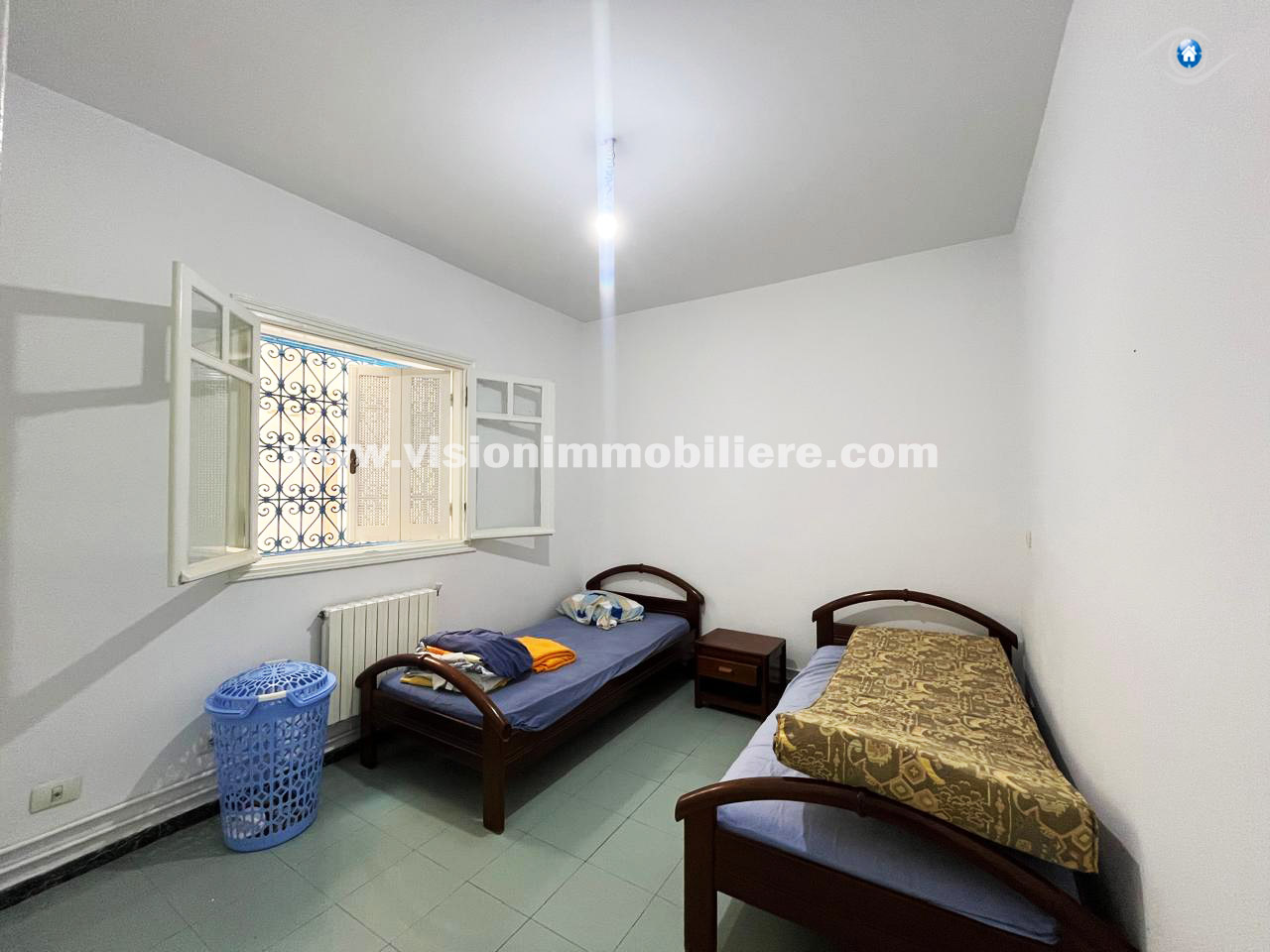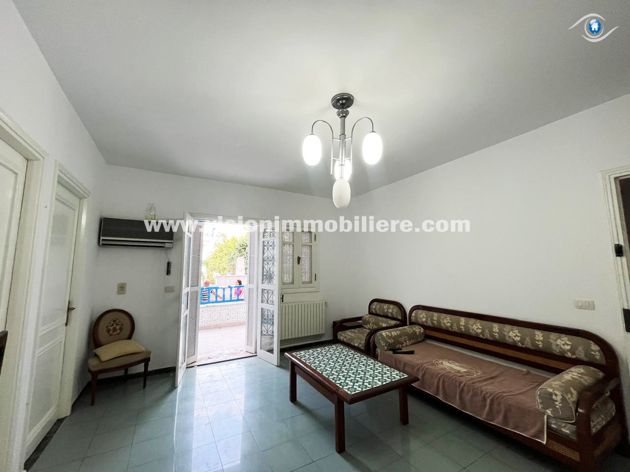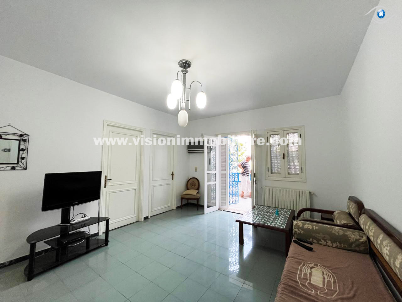 À louer pour toute l'année chez Vision Immobilière Tunisie-Hammamet, cet appartement est situé à Hammamet Centre au RDC. L'entrée s'ouvre sur un salon lumineux. Une cuisine avec une table à manger et une salle d'eau. La partie nuit se compose de deux chambres à coucher et une terrasse. L'appartement est entièrement équipé par le chauffage central et la climatisation. Place de parking sous sol est disponible.