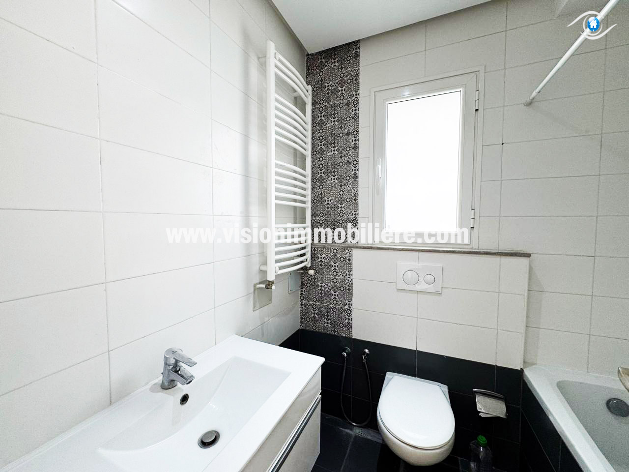 A louer, chez vision-immobilière Hammamet Tunisie, un appartement situé à Hammamet nord au 4ème étage proche de toutes les commodités dans une résidence avec ascenseur. L’entrée donne sur un salon lumineux et spacieux qui s'ouvre sur une terasse, une cuisine. Le compartiment nuit dispose de deux chambres à coucher qui partagent une salle de bain. L’appartement est entièrement équipé de chauffage central et de climatisations. Une place de parking sous sol est disponible.