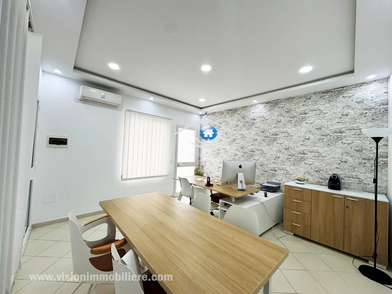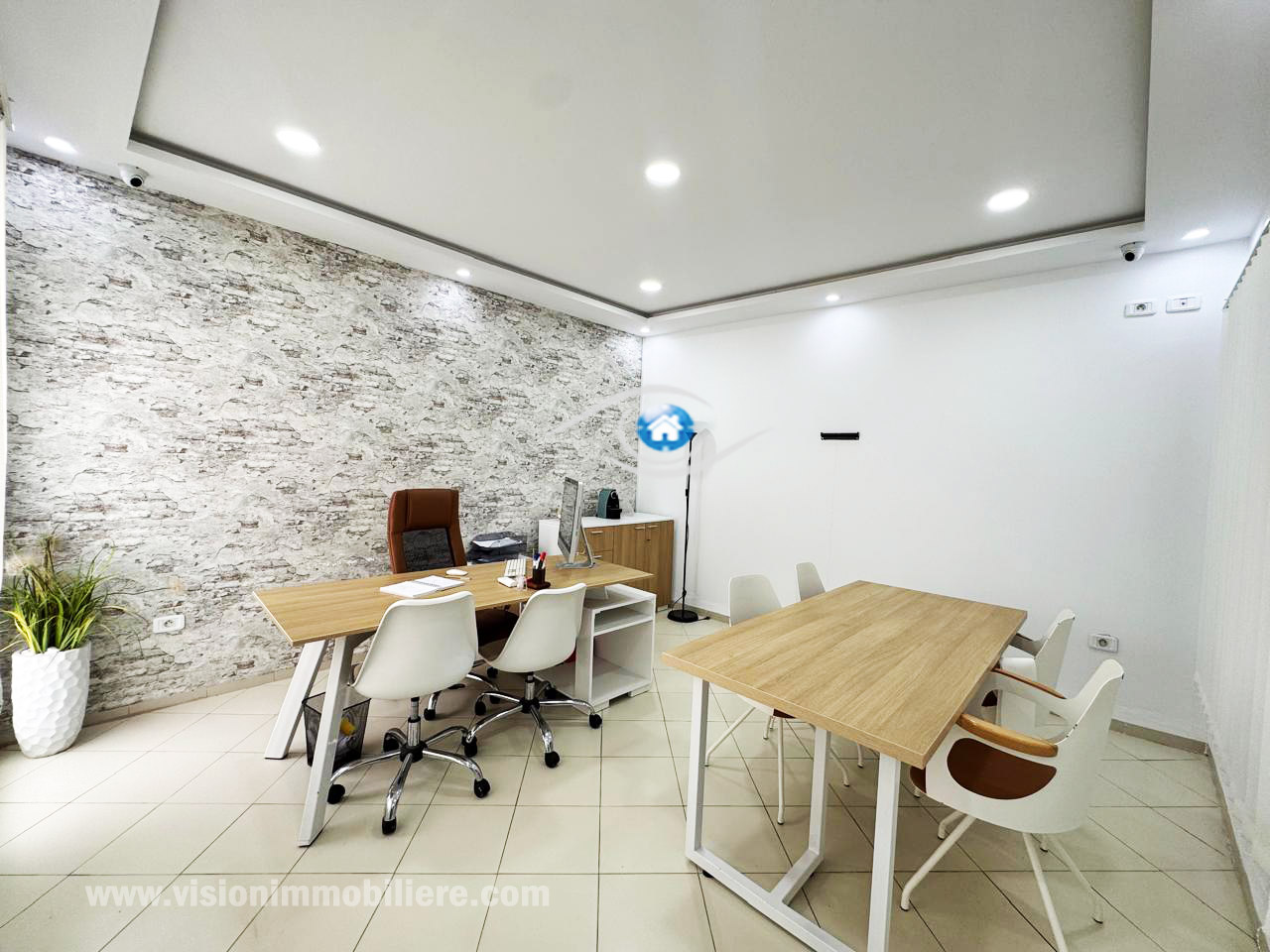 vision-immobilière Hammamet Tunisie, un bureau commercial situé à Hammamet centre dans un immeuble au RDC bénéficie d'un emplacement stratégique. Le bureau se compose d'une seule pièce avec une petite terrasse. l'espace est conçu pour favoriser un environnement de travail agréable et efficace.