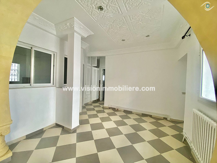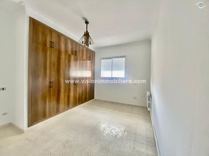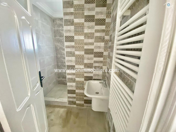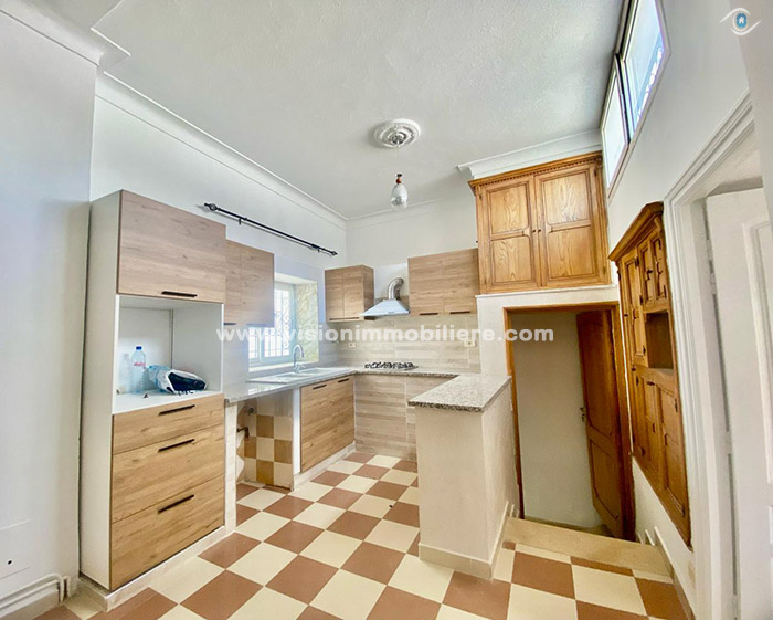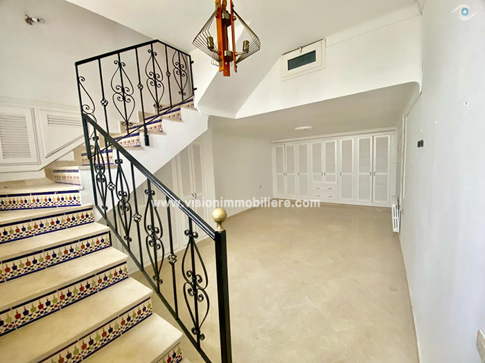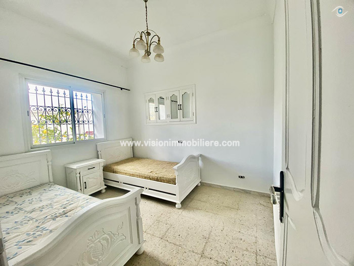 À louer, pour toute l'année, Chez Vision Immobilière Tunisie Hammamet, cette maison qui se situe à Hammamet Centre. Cette maison se trouve dans un quartier résidentiel particulier et calme. L'entrée donne sur une petite terrasse. La partie jour est composée principalement d'un salon. La cuisine agencée est aménagée par les éléments de rangement nécessaire. Une salle d'eau pour l'invite. La partie nuit dépose trois chambres à coucher bénéficient chacune d'un dressing. Un garage.